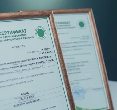 Предприятие первым в Республике Беларусь выпустило органический спирт «Органик», органическую водку «Белая Русь» и водку с пищевым золотом MINSK KRISTALL GOLD.